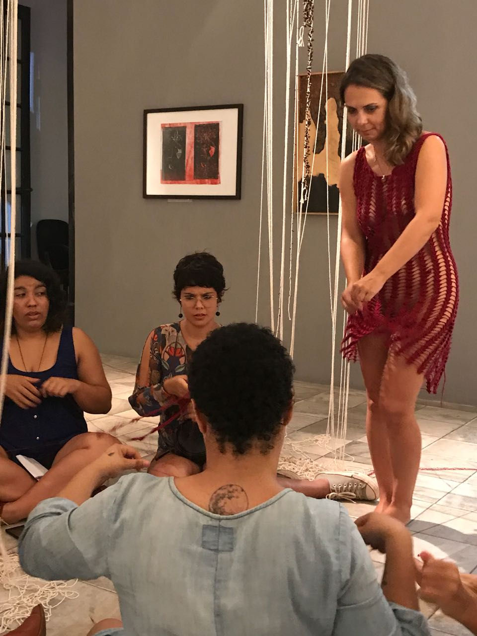 Performance têxtil com participação de Mariana Gualberto, Shavanna Luiza e Sandro Drumond. Mamam (Recife/PE), Galeria Christal (Recife/PE) e Umbral (Buenos Aires/Argentina). Fotografias: Walton Ribeiro